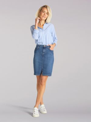 Premium Ladies Womens Long Knee Length Denim Skirt Dress 10 12 14 16 18 20 Clothes Shoes Accessories Women S Clothing